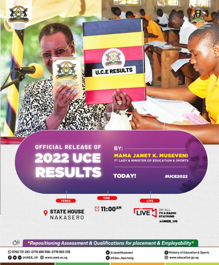 The Minister of Education and Sports, Janet Kataha Museveni, has released the 2023 Ugabda Certificate of Education (UCE) results at State House Nakasero.